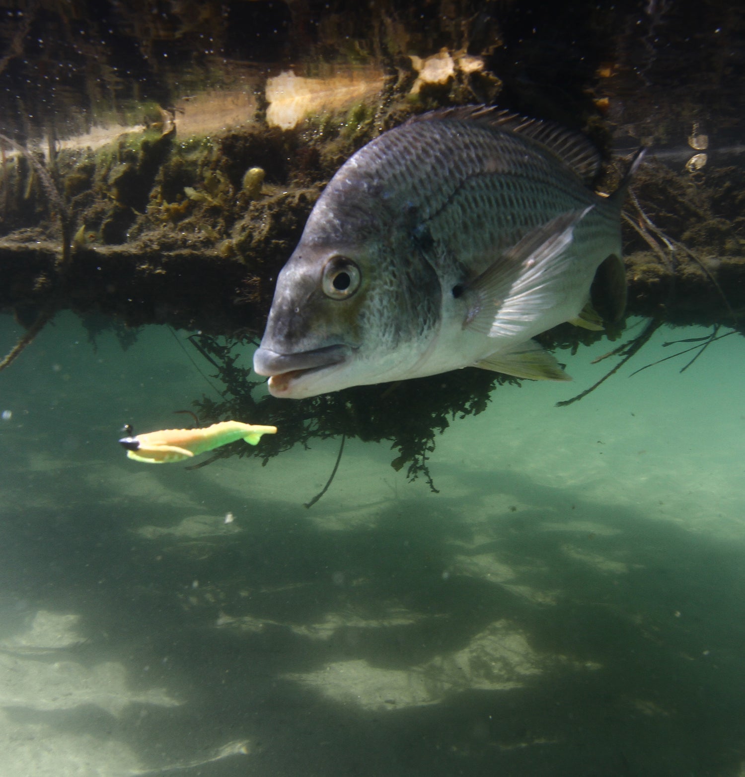 These lures are versatile in that you can simply throw them out, let them sink to the bottom and give them a few hops with the retrieve to tempt a fish to take it. If you’re wanting to increase your catch try and get your lures as close to structure as possible. Bream love structure and there are two types of “bite” which can occur when using this technique. The first is that the bream is hungry and the lure looks tasty so it will take a swipe at it but the second is the “reaction bite.” A reaction bite is when a fish takes a bite or swipes at a fish to get them out of their space. Even if the fish isn’t feeding their instincts will take over and will take the lure out of aggression.