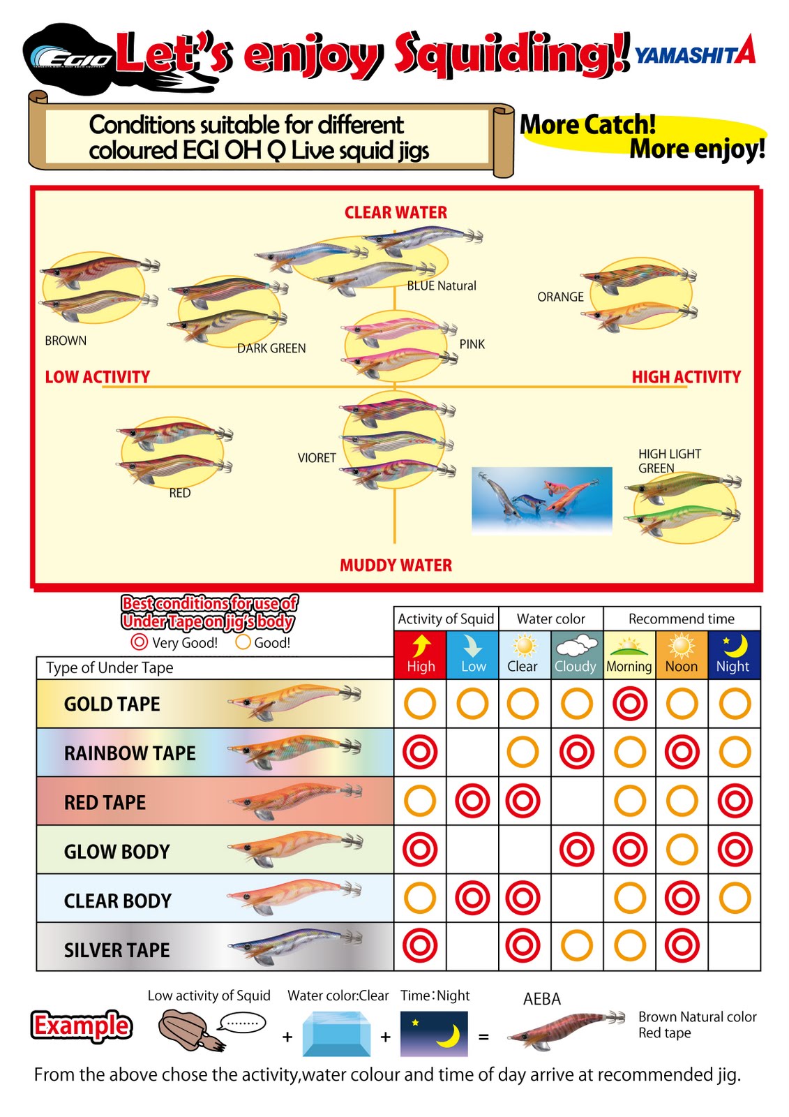 This is a big topic. Again, as we’ve mentioned squid are sight hunters so everything about a lure has to be appealing to a squid’s eye. The most common form of squid jig design is the prawn shape and what makes an expensive lure so good is the way it sinks. That’s the key in attracting a squid. Lure brands like Yamashita, Daiwa, Shimano and the like will do this straight out of the box so you don’t need to worry about the quality but rather the colour and size. Let’s break it down.